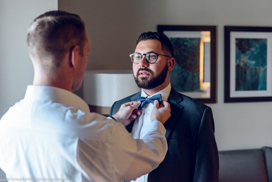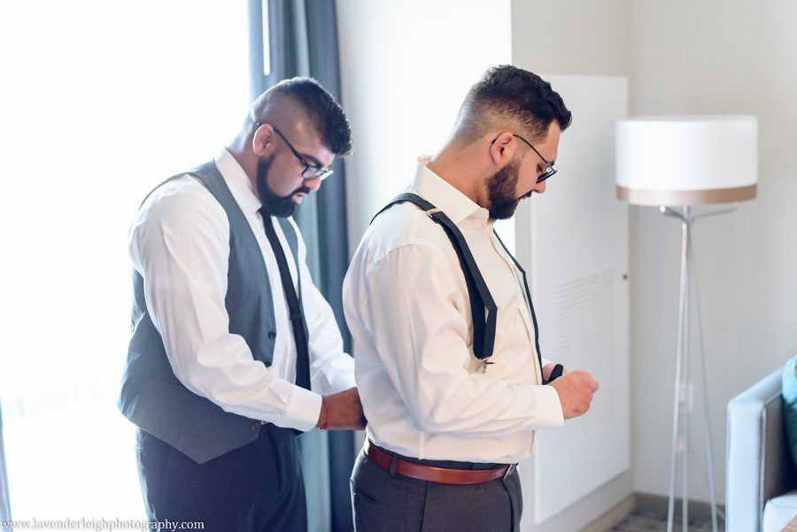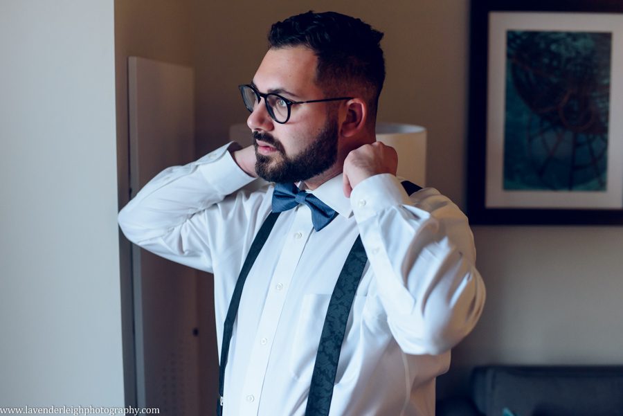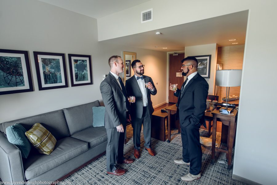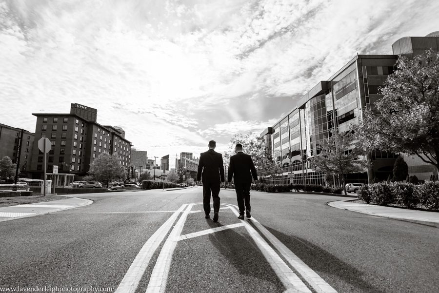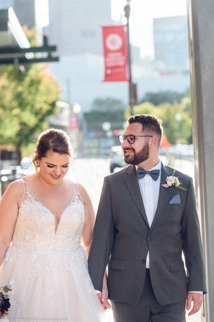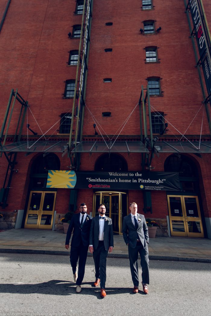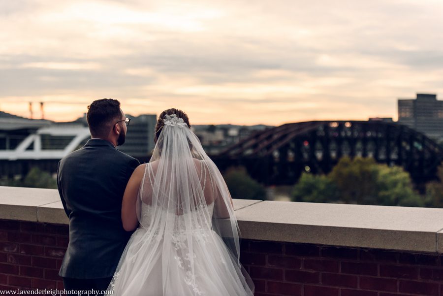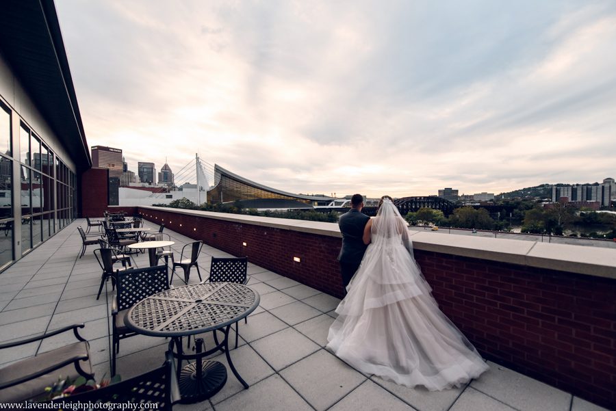One of my favorite moments of the day happened as the sun was setting. I asked Meg and Andrew to take a five minute break from their cocktail hour for a picture, and as we escaped onto the balcony at the Heinz History Center, Meg and Andrew took a quiet moment for themselves, to admire the bright city skyline, and take a moment together as newly husband and wife.