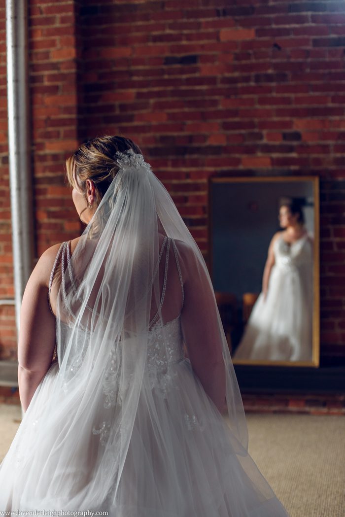 I start to gather Meg’s dress, flowers, etc. to photograph her detail pictures, and notice that I don’t see any wedding shoes in the vicinity. “Oh, don’t worry about photographing my wedding shoes, they’re just Crocs” says Meg, as if knowing that I was just going to ask about them. I chuckle at Meg’s practicality; she didn’t want fancy wedding shoes because she wanted to be comfortable the entire day. The crocs were Meg’s something blue, by the way. (And, after some convincing, she agreed that the wedding shoes could be in some of the pictures!)