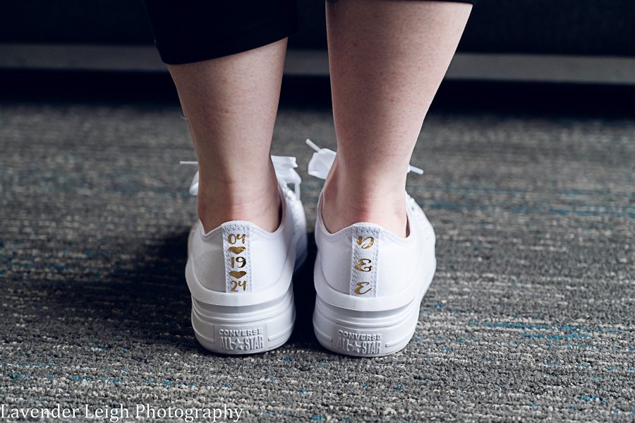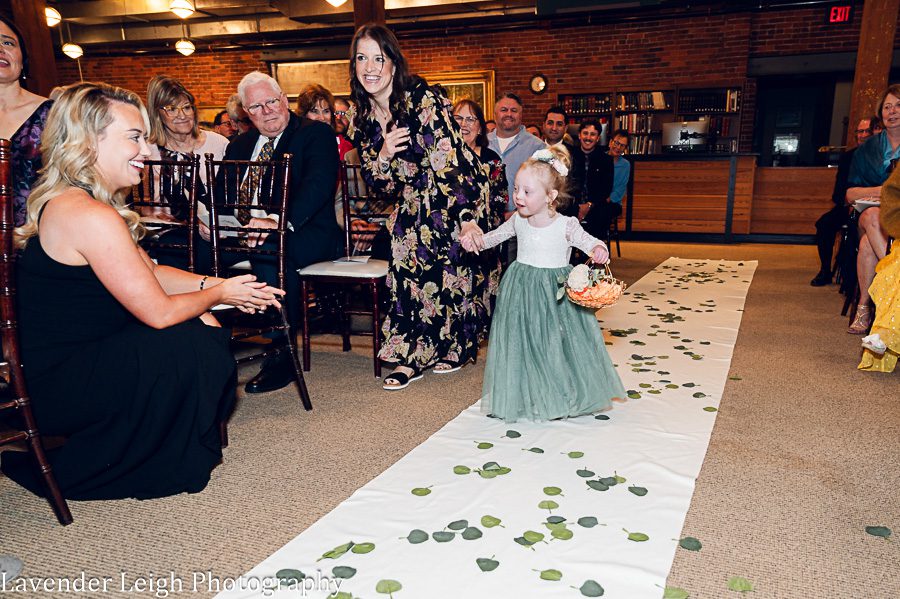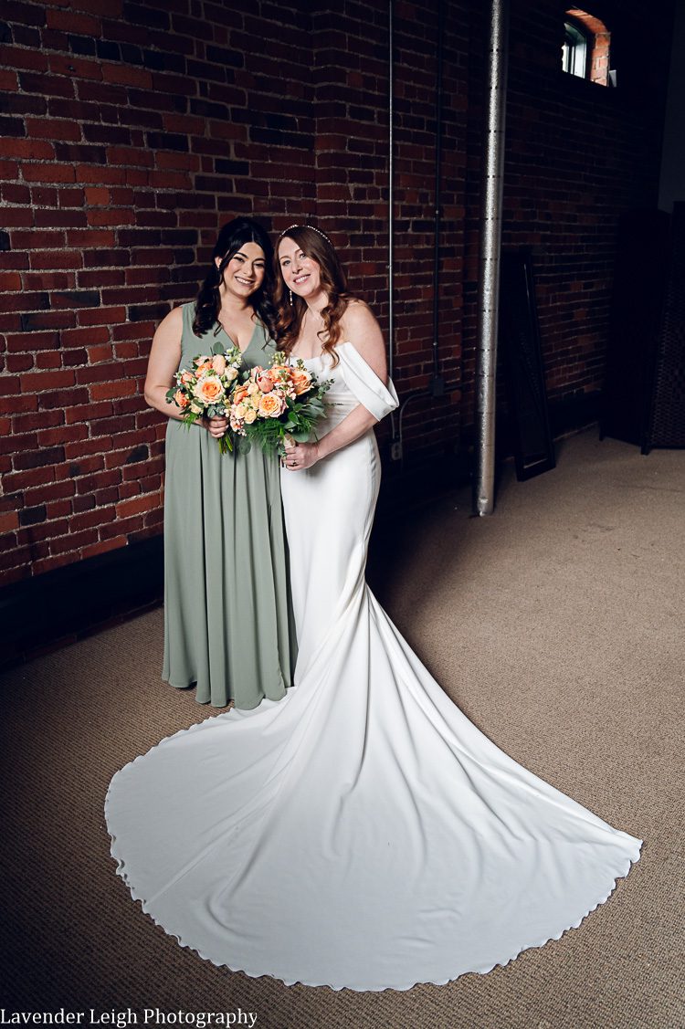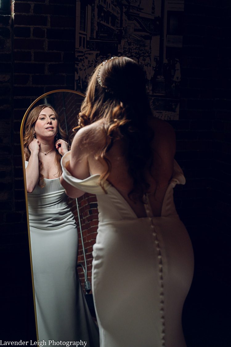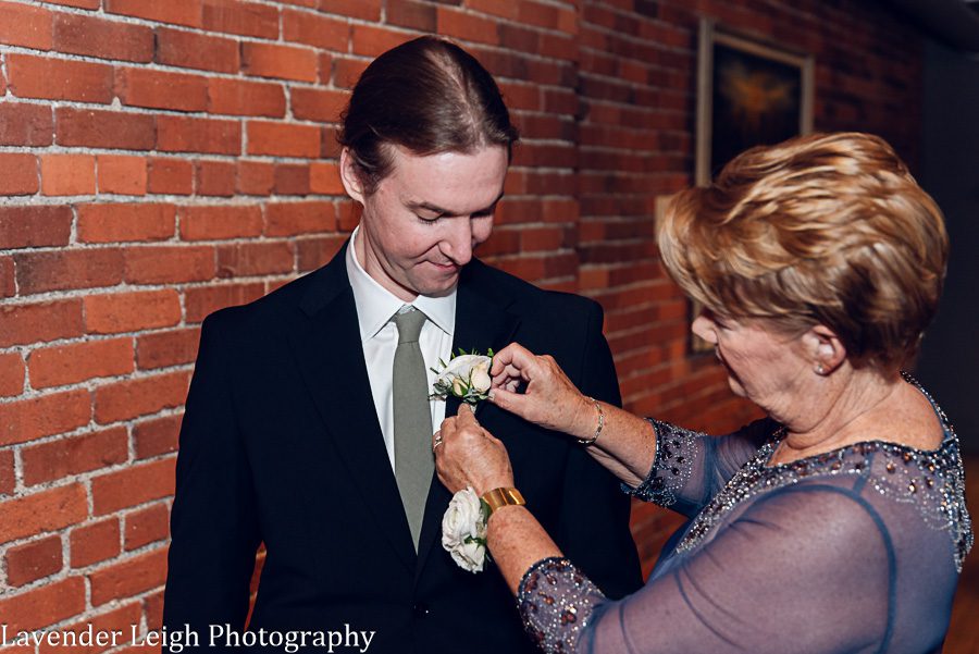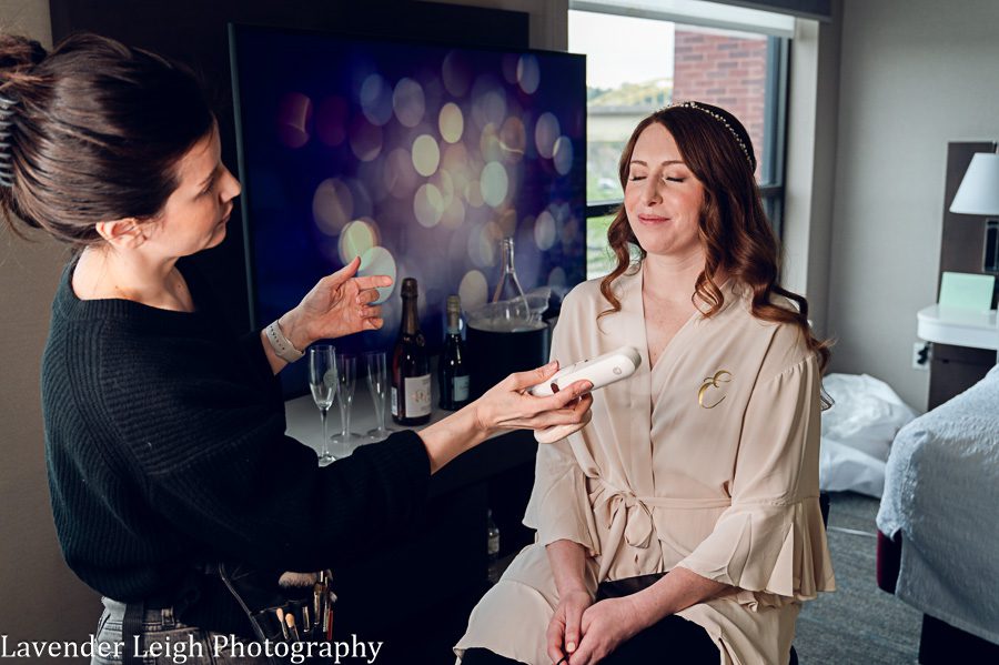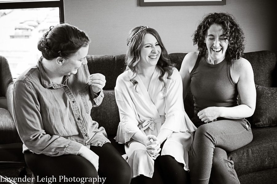 Walking into Emily’s getting ready room, there was a sense of calm amidst the chatter and laughter of Emily and a few of her close friends in the bedroom suite. Emily was receiving her final touches of makeup, and the final sips of celebratory champagne were being relished prior to setting sail to the Heinz History Center. Emily’s mother walks into the room with a lovely green dress that closely matched the color of Emily’s emerald engagement ring, and Emily’s Maid of Honor followed close behind in her flowing sage-green dress. I was already in love with the color palette that Emily had chosen for her day, and couldn’t wait to see the full picture once Emily had on her wedding dress!