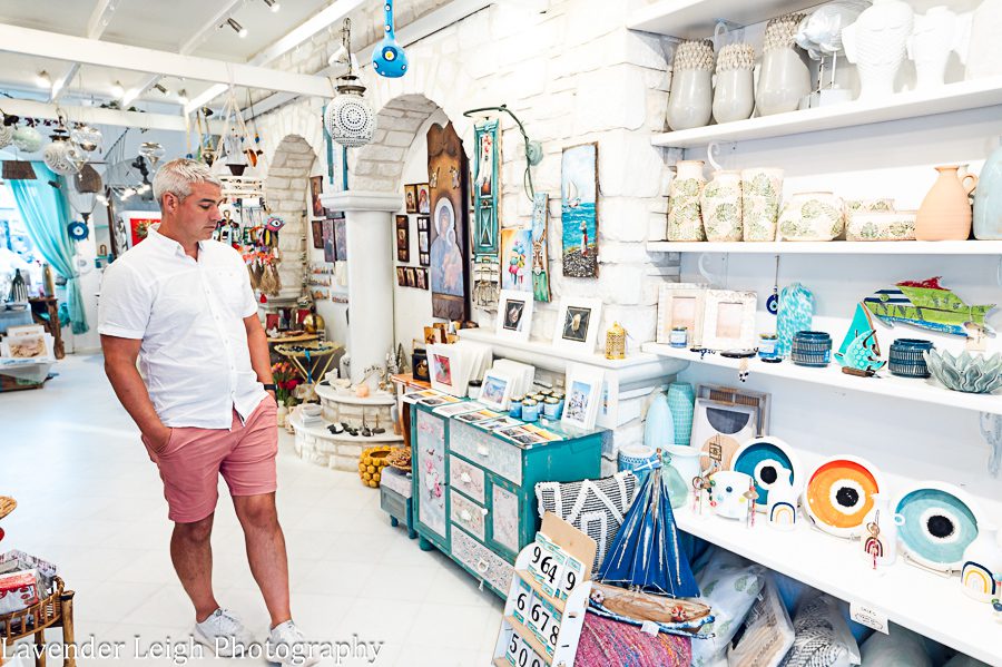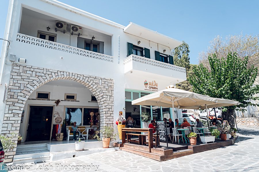 We visited a charming hillside town towards the center of Paros named Lefkes, which boasts lovely views of the island. Walking around Lefkes, you will find cafes, tavernas, an ice cream shop, and a plethora of shopping. The whitewashed buildings had bursts of hot pink flowers cascading overtop of the archways.