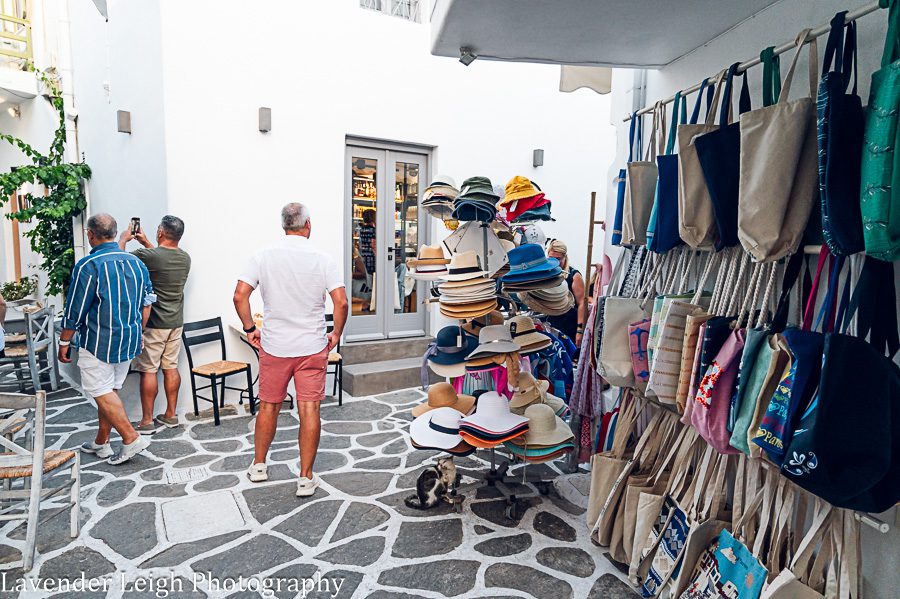 Naoussa is an impeccably clean, white-washed town in Paros dotted with blue shutters and doors. This town is a maze of shopping, and the wares range from homemade leather goods, to unique, light and airy dresses, to jewelry. You could get lost in this maze and shop for days without coming across the same store twice! Outdoor eateries and cocktail bars were bountiful, too!