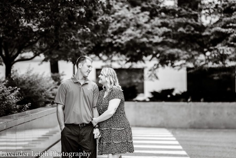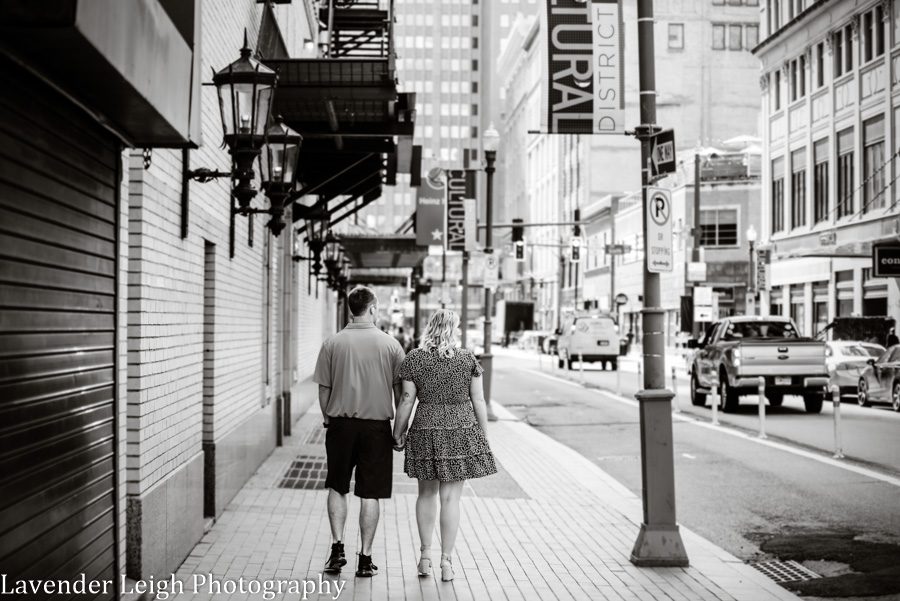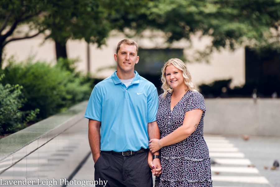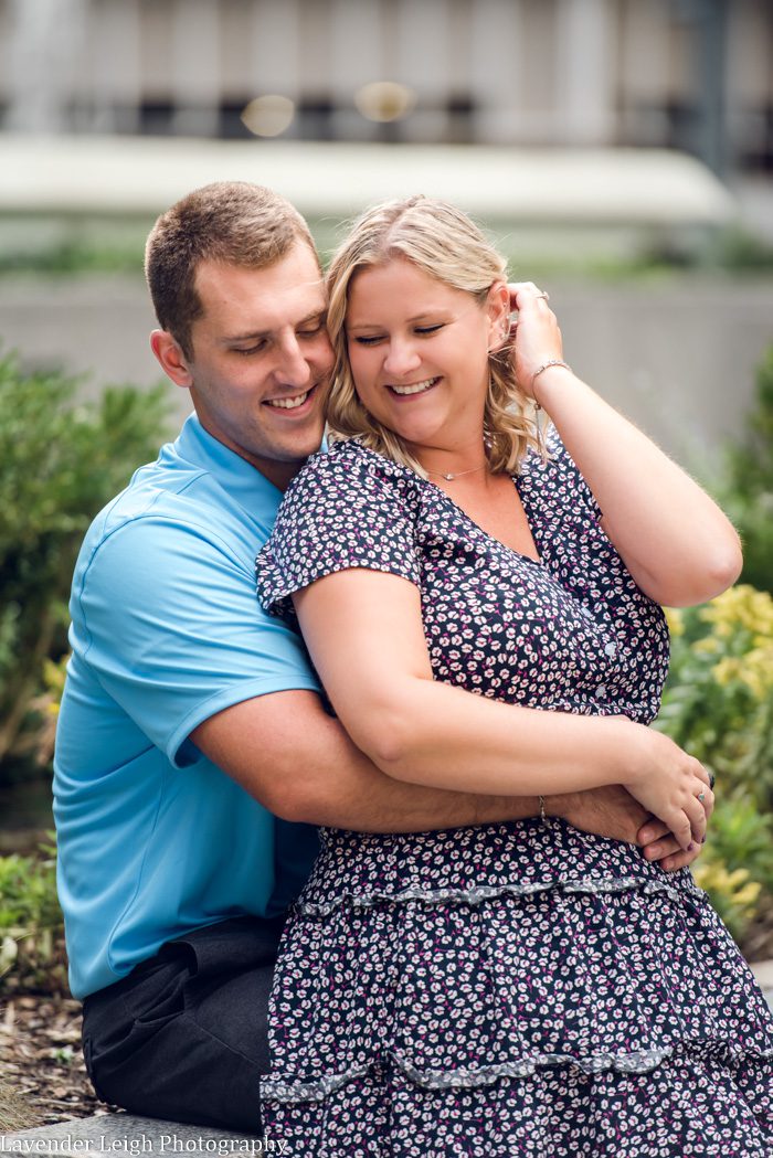 Sarah and Josh. A couple that has the perfect mix of love and admiration for one another… and it is obvious that they are naturally best friends. I photographed their engagement session downtown, and as we walked to different parts throughout the city, the entire session felt at ease. Which I love because during the in-between parts of picture taking, I like to get to know the couple. I really appreciate learning about people, their stories, and their heart. For my wedding clients, I love to know how they met, what they like to do together, and what they are most excited about in life. Oh, also, what their ideal way is to spend a rainy Saturday together.