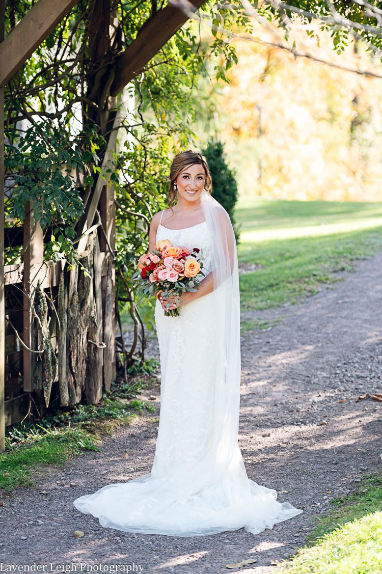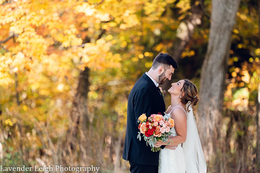 The cloudless sky was a robin’s egg shade of blue, and the sunlight glittered through yellow, orange, and red foliage, producing the most breathtaking array of autumn vibrance. This was the start to Richelle and Lenny’s day; a spectacular scene for their spectacular wedding.