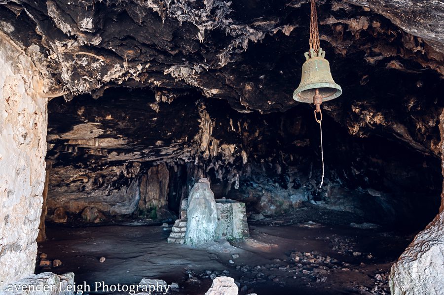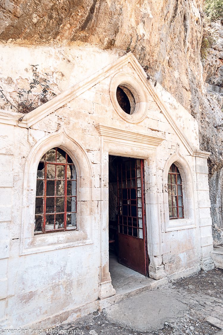 Mountain goats galore in Crete! The above and below pictures depict the hike between the Gouverneto Monastery and the abandoned Katholiko Monastery. The trail begins at Gouverneto Monastery, pictured above.Same hike. The above is the entrance to Arkoudospilios Cave, which is famous for a stalagmite formation that looks like a crouching bear (below). The goddess Artemis was once worshipped in this cave, according to archaeologists. The end of our hike; pictures from the abandoned Katholiko Monastery, which is rumored to be the oldest Monastery in Crete, possibly as early as the 6th or 7th century.Above is the cave of St. John the Hermit at Katholiko Monastery.After our hike to the Katholiko Monastery, we stopped by Monastery of Agia Triada Tzagarolon. This monastery owns vineyards and olive groves. We sampled some wine and olive oil here in a little cove under the steps. The wine tasting cover under the monastery’s steps!