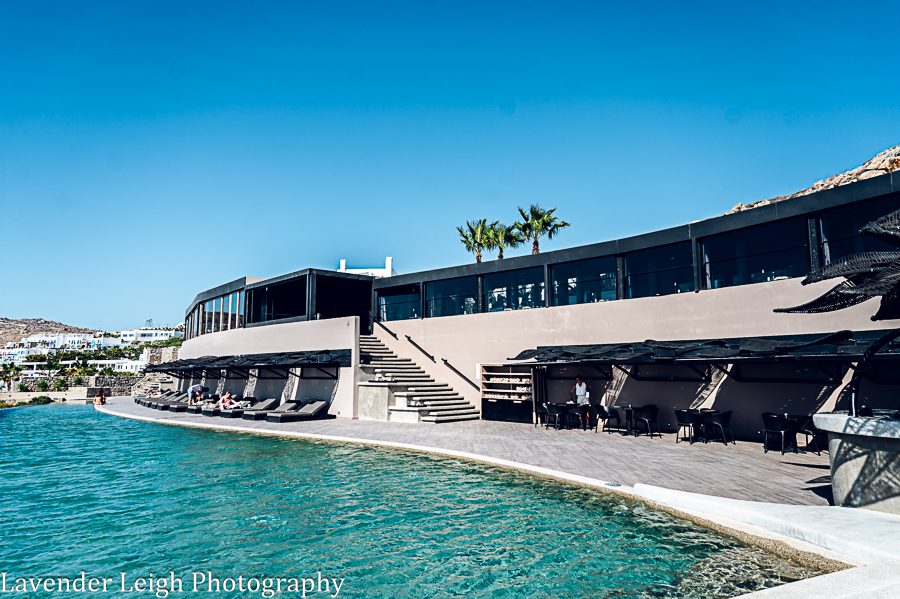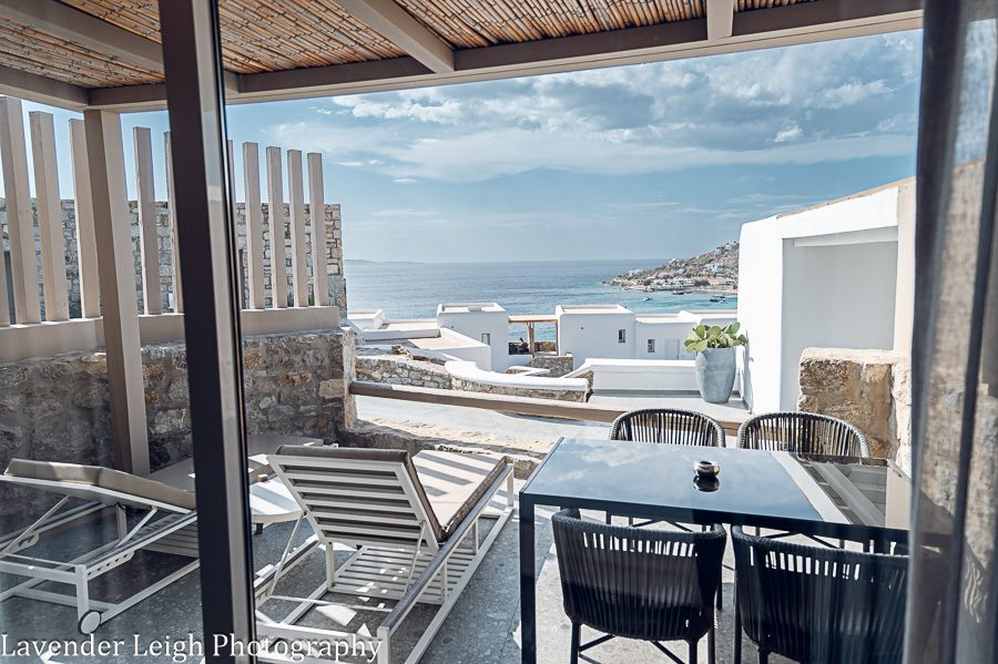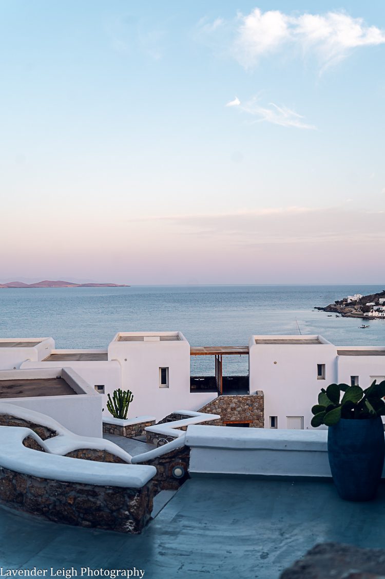 The pool at Amazon Mykonos Resort and Spa, where we stayed in Mykonos.Another view of the pool/ bar/ jacuzzi.The pool glitters at night. Look at that dreamy sunset!Amazon Mykonos hotel lobby.The “Welcome” refreshments and treats at Amazon Mykonos.Have you ever seen such a huge room in Europe?! We certainly lucked out.The view from our bed; we sipped coffee every day on our front porch.This was the view from our room’s porch. It was hands down the most tranquil and heavenly scene that I have ever experienced while traveling.A daytime view from our room’s porch.A friendly resident at our doorstep every day!