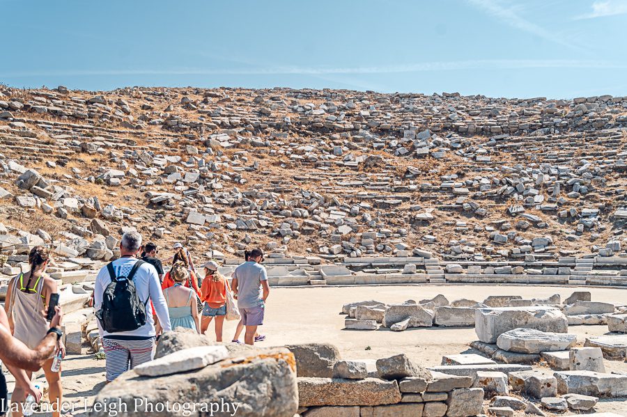 Once at Delos, we walked through what was once a bustling town and trading post between the 1st and 2nd Century BC, and saw parts of houses (including one of Cleopatra’s), a large theater, and what was once a market, still partially intact. It wouldn’t be unusual to see and touch artifacts, such as a vase, in its final resting place from all of those years ago. Even more artifacts can be seen in the Delos Archaeological Museum, which is a short walk through the town’s ruins.