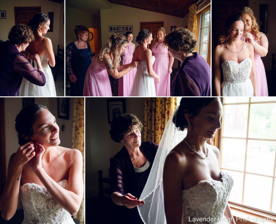As the bridesmaids were flurrying around in their pretty periwinkle dresses, we tucked Katie into a quiet room for her to put on her wedding dress. She was calm, cool and collected, and the second she was buttoned up in her dress, a wave of excitement swept through the room, and her beautiful blue eyes beamed with anticipation of what was to come that day!